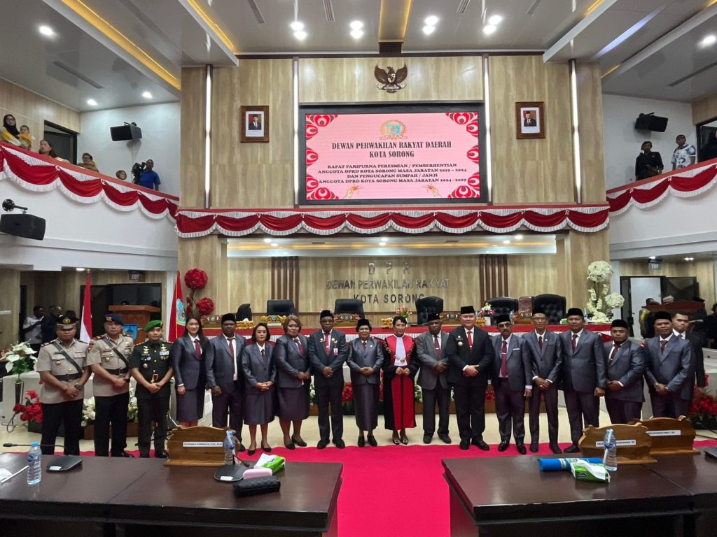 Sebanyak 30 Anggota DPR Kota Sorong periode 2024-2029 secara resmi dilantik dalam rapat paripurna yang digelar di Gedung DPRD kota Sorong, oleh Ketua Pengadilan Negeri Kota Sorong, Beauty D.E Simatauw, dalam rapat paripurna di ruang sidang utama Kantor DPR Kota Sorong, pada hari Rabu tanggal 29 September 2024.